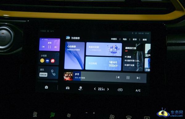 内饰方面,新车中控区域比较简洁,大多数功能都集中在了9英寸的中控屏幕上,下方仅留下空调系统的实体按键,原本的中控系统按键则被放在挡杆后方。配置方面,新车增加了Fun-Life智能网联系统,并内置了车载微信功能,可以通过专属的微信按键控制界面并接收/发送信息。