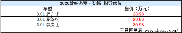2020年6月18日下午,2020款帕杰罗·劲畅正式上市。新车共推出3款车型,售价区间为28.98-30.98万元。同时,购买新车的用户还可享受5年10次基础保养、PAJERO·SPORT专享购车金融方案等后期优惠政策。这款车以平行进口的形式引进,并在广汽三菱授权经销店进行销售,此次引入的2020款帕杰罗·劲畅不仅全系标配先进的第二代超选四驱,还配备两把差速锁,2020款帕杰罗·劲畅作为帕杰罗家族的全新跨越之作,此次以全新概念“3047Plus”为广大用户带来了高人一筹的生活方式。