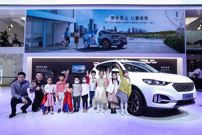 11月21日,WEY展台上的“安全至上 儿童优先 WEY VV6儿童安全体验营”活动吸引许多观众驻足围观。这场活动是VV6儿童呵护版与360儿童联手打造,通过多项环节普及儿童安全知识,传递儿童安全理念。