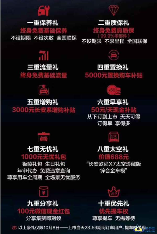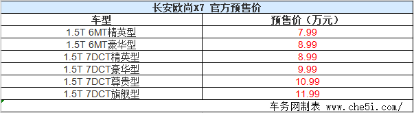 10月8日,长安欧尚X7正式开启预售,全新紧凑型SUV——欧尚X7将推出6款车型,预售价格为7.99-11.99万元。新车全系搭载1.5TGDI发动机。同时,新车有望于11月上市销售。值得一提的是,长安欧尚X7还推出了力度空前的终身免费维保政策(终身免费真质保、终身免费基础保养)与5000元置换购车补贴、3000元长安系增购补贴、50元/天现金补贴等一系列福利共价值27700元的10重当红万元豪礼。渠道方面,长安欧尚X7已在全国200家终端门店实车到店,为广大用户提供了全面的购车保障。