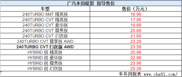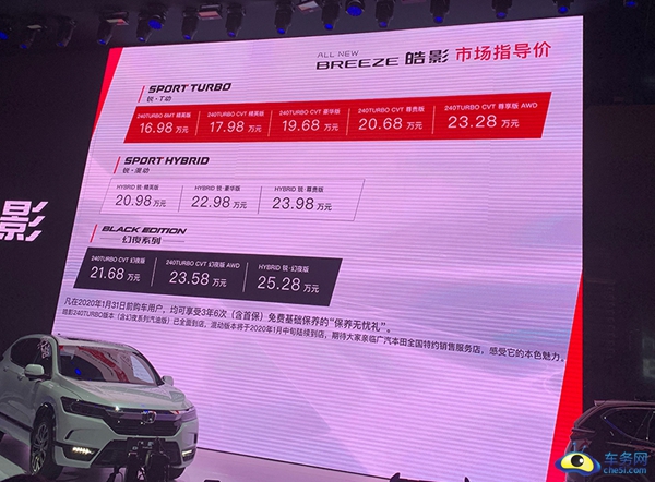 广汽本田皓影正式上市 售价16.98-25.28万元