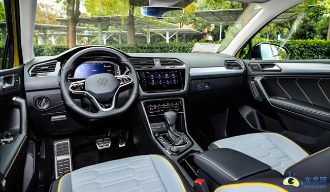 内饰总体设计风格还是沿用了途观L的设计风格,仅在方向盘、触控中控屏和空调面板上和途观L有所区分。相比外观给人带来的强烈惊喜,其在内饰方面则有些让人失望。当然好几年前的最美大众CC(参数|询价)也存在一样的问题。途观X采用了印有R-line标识特别样式的三辐式赛车方向盘,多功能按键区域使用了高光黑触摸面板,大幅提升了档次感。并且能够滑动使用触感不错,但是比较容易沾染指纹,需要多加打理才行。