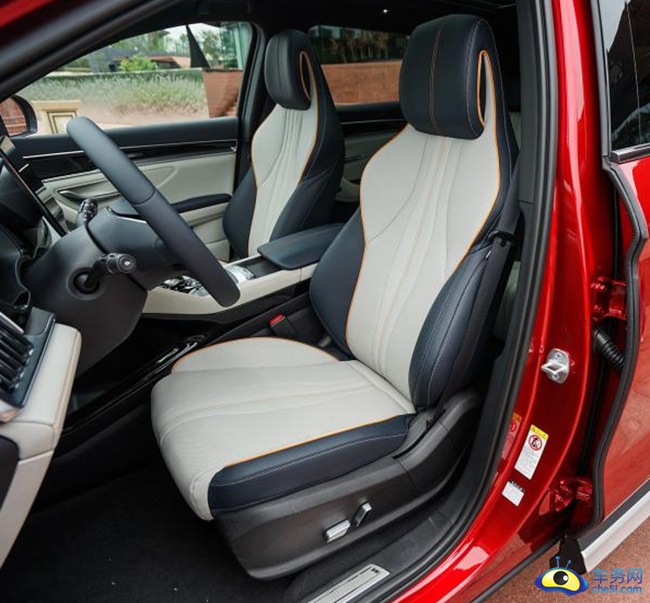前排座椅采用一体式设计,看上去颇为动感,高配车型还提供主/副驾驶座电动调节、前排座椅加热/通风的配置。后排座椅足够宽大,保证了较好的乘坐舒适性表现,座椅的靠背倾斜度也还支持多级调节。此外,后排地板也采用了全平的设计,对后排多人乘坐时的体验更有帮助。