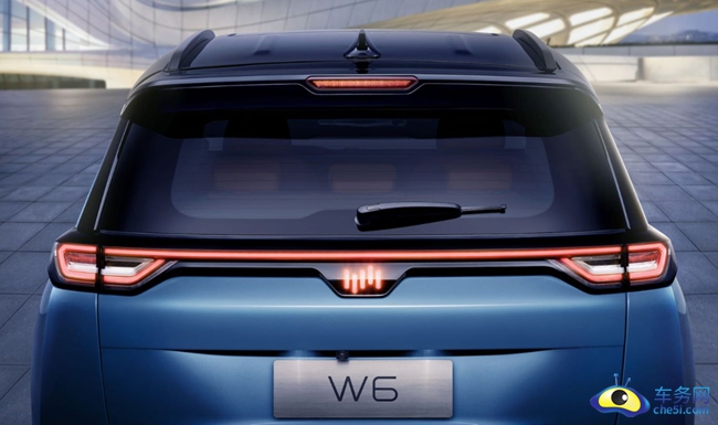 威马W6外观设计与之前威马EVOLVE高度相似,新车前脸十分简洁,采用封闭式前进气格栅,搭配贯穿车头的日间行车灯,转向灯使用了目前流行的流水式,整个前脸更显个性科幻。此外,新车前大灯组下方运用黑色饰条营造出泪眼的造型,提高了车头的辨识度。另外,新车中间的LOGO灯也内藏玄机,它有四种模式——迎宾、充电、行车和回家,不同模式下还有交互功能,例如充电时会闪烁,行车时能够常亮。
