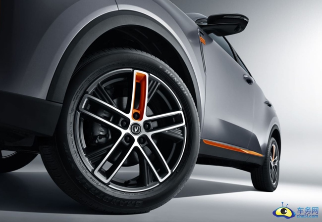 来到车身侧面,新车采用了分段式腰线设计,并一直延伸至尾灯组处,下方腰线则由前门延伸至后轮处,让车辆看上去更加凌厉。同时,新车在轮圈以及侧裙等处同样融入了橙色设计元素,能够与灰色车身设计形成鲜明的撞色反差。尺寸方面,新车的长宽高分别是4515/1865/1680mm,轴距为2656mm。