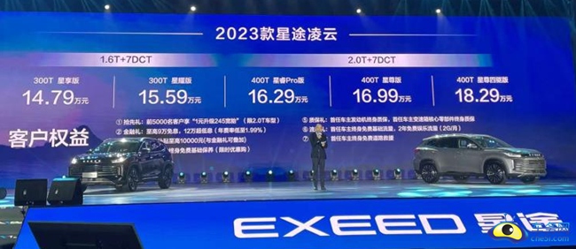 2022年9月6日,星途旗下新款凌云车型正式上市,新车共推出5款车型,售价区间14.79-18.29万元。同时,此次还公布了星途凌云S CCPC冠军版的售价,共推出2款车型,售价区间为15.29-17.29万元。新车是基于星途M3X火星架构PRO打造,前身是星途TXL改名而来。2023款车型的外观内饰变化不大,但在配置等方面进行了升级优化。新增11项升级,外观新增颜色,增加女王座驾等。新车定位中型SUV,搭载1.6T与2.0T两款涡轮增压四缸发动机。