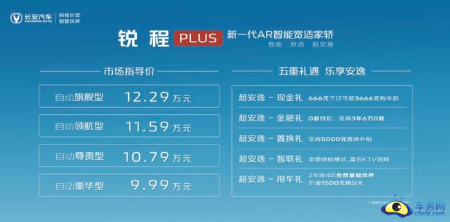 2022年9月28日,我们从长安汽车官方了解到,旗下全新紧凑型轿车——锐程PLUS正式上市,新车共推出4款车型,售价区间为9.99-12.29万元。新车可以理解为是长安锐程CC的改款车型,整体采用了家族最新的设计语言,视觉效果更加时尚。关于新车详细售价,请见下表: