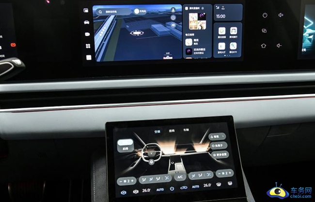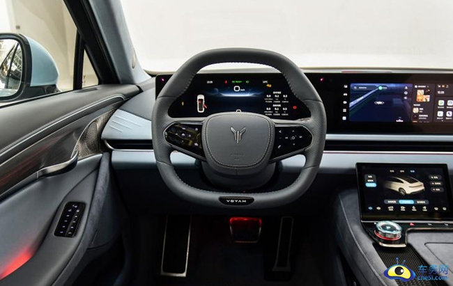 车内部分,新车采用了简洁的T字型中控台设计,用料上采用了大量的真皮 Alcantara材质包裹,3块12.3英寸屏幕贯穿左右。方向盘采用了六边形设计,采用与内饰同色的真皮包裹,并且配有白色缝线装饰,方向盘上集成的多功能按钮也采用了触控的形式。车载系统部分,该车内置了腾讯视频、QQ音乐等主流的在线视频、音乐播放软件,交互方式上支持手势控制、四声区识别、声纹识别、人脸识别等。视听上该车搭载了14个扬声器的丹拿音响,并且环绕座舱的呼吸式变色灯可根据音乐的节奏律动。与此同时该车还配备了AR-HUD,画幅可达60英寸,可提供30 类交通信息,大幅提升驾驶便利性和安全性。