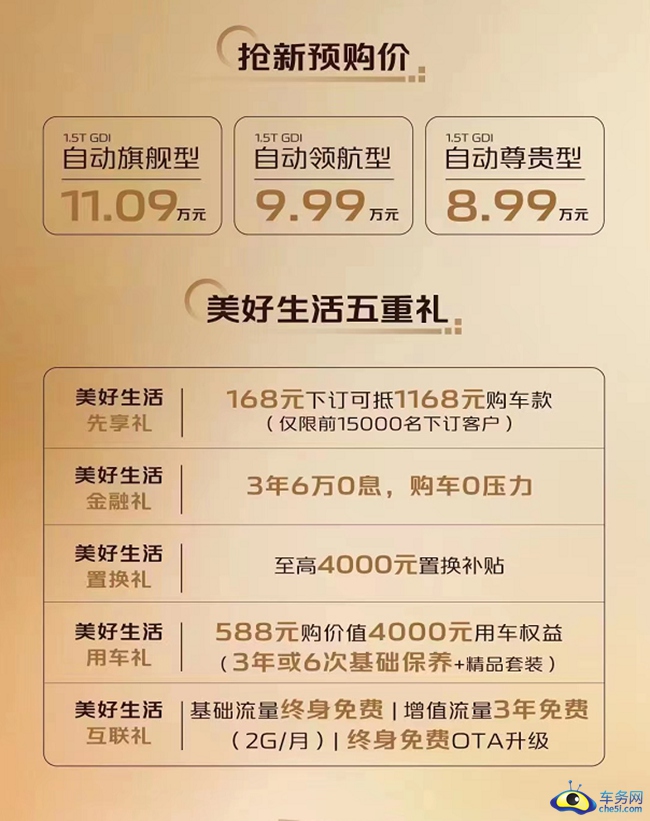 内部配置方面,新车将提供13.2英寸中控屏、10.25英寸仪表、天窗、自动感应尾门、一键启动、自动空调、空调远程启动、后排空调出风口、全车4枚扬声器、OTA车载系统远程升级、定速巡航、后驻车雷达、倒车影像、右侧盲区摄像头、车身电子稳定系统、电子驻车、AUTOHOLD自动驻车、TPMS胎压监测、前排限力安全带等。
