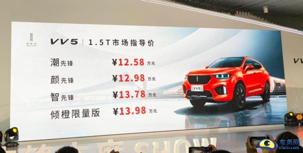 5月15日,WEY VV5 1.5T车型正式上市,共推出4款车型,售价区间为12.58-13.98万元。VV5 1.5T车型属于VV5的新增车型,动力方面搭载一台1.5T发动机和7挡双离合变速箱,相比原来全系车型只有2.0T的动力,1.5T车型的加入让VV5的产品竞争力大幅提升,以满足不同购车需求的消费人群。