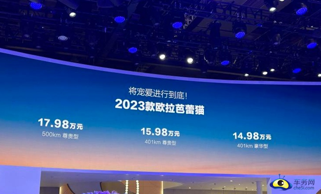 2023年4月18日,在上海车展上,欧拉2023款芭蕾猫正式上市,新车共推出3款配置车型,售价区间为14.98-17.98万元。新车整体造型圆润,带来浓郁的复古气息,配置方面全面升级。