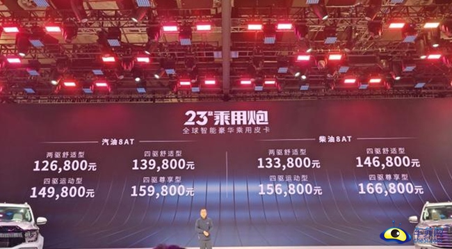 4月19日,2023上海车展现场,长城炮品牌为我们带来了长城炮6×6以及2023款长城炮乘用版。其中长城炮6×6为首发车型。长城汽车2023款长城炮乘用版正式上市,新车共推出8款车型,售价区间为12.68-16.68万元。并推送五重购车大礼。在外观、内饰、配置方面均有升级,产品力得到进一步提升。