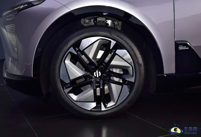 新车轮圈采用五辐式双色设计,这种低风阻复杂样式的设计非常新颖,而且前后尺寸不同,前轮是245 45/R21,后轮是275 40/21。