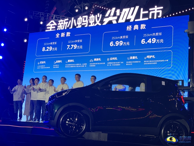 2023年10月28日,奇瑞新能源旗下——全新小蚂蚁正式上市。新车共计推出2款车型,售价7.79-8.29万元。除了采用全新Qq专属标识外,同时外观和内饰也进行了优化,同时新增两款车色,分别为“不焦绿”和“绝绝紫”。此外,经典款小蚂蚁也将同堂销售,共2款车型售价区间6.49-6.99万元。