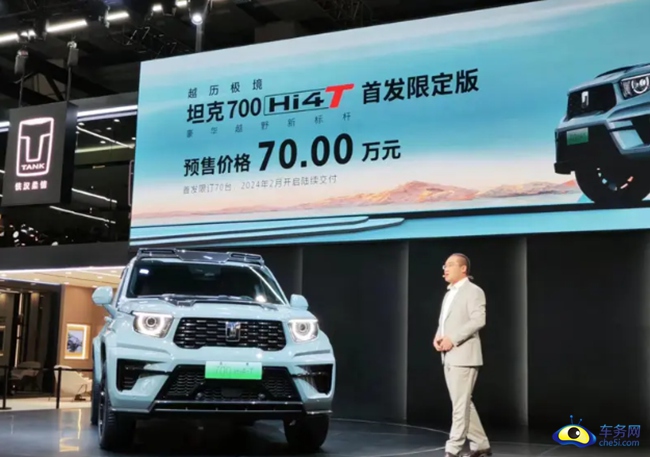 2023广州车展上,坦克700 Hi4-T首发限定版正式开启预售,预售价为70万元。坦克700 Hi4-T外观将延续“机甲科技”路线,造型颇为硬朗,同时动力搭载3.0T混动系统,性能表现值得期待。同时,首批限量70台,Hi4-T技术架构也将再次进阶,以领先性能以及豪华体验,重新定义中国豪华越野主义。