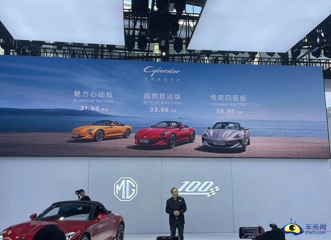 2023广州车展上,全新纯电动敞篷跑车MG Cyberster正式上市,新车共计推出3款车型,售价31.98-35.98万元。其0-100km/h加速时间最短为3.2秒,采用前双叉臂+后五连杆独立悬架,配备Brembo四活塞刹车卡钳。