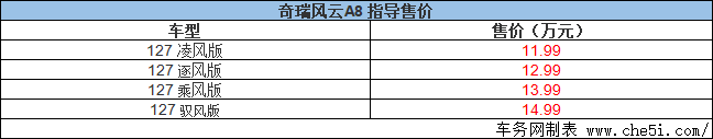 2024年1月3日,奇瑞风云A8正式上市,新车共推出4款车型,售价区间为11.99-14.99万元。奇瑞风云A8定位于大尺寸紧凑型家用轿车,新车在设计风格上延续了艾瑞泽8车型的家族式设计理念,奇瑞风云A8搭载由1.5T发动机与电动机组成的鲲鹏超能混动C-DM系统,将拥有125km的纯电续航和超过1400km的综合续航。