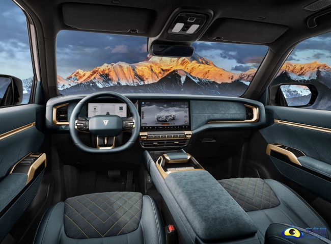 内饰方面,深蓝G318同样给人留下了深刻的印象。对称式设计的中控台,搭配密林黑、冰川蓝和圣湖绿三种配色,既时尚又大气。整体设计理念遵循了硬派越野的风格,大面积的方直轮廓线条,让内饰看上去更加硬朗。14.6英寸智慧屏和12.3英寸全液晶仪表盘的组合,提升了车内的科技感。飞船推拉杆式的电子挡杆设计,更是凸显了这款车的独特气质。不仅如此,车内拥有大量的实体按键,方便在各种驾驶路况中的功能操作,也利于行车的安全性。