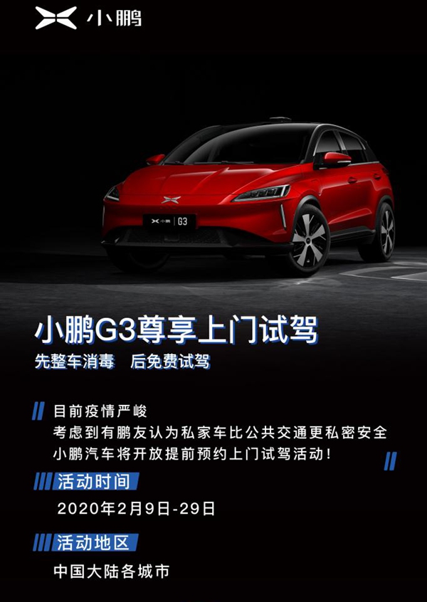 为保障新、老用户在防疫期间购车、用车的安全问题,小鹏汽车相继推出“把智爱带回家”服务、“医护体系人员专属购车政策”、“广州个人租车业务”等系列专属礼遇。现在,小鹏汽车再次针对北京地区消费者推出“北京放牌,小鹏送礼”活动,为购车用户提供专属福利包:即日起至2020年3月31日,购小鹏G3的用户可以享受多重大礼。