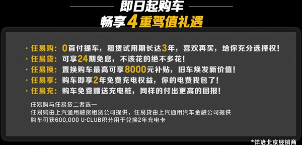 3、如果想换车了,第2、4、6年的官方裸车回购价格最高可达6.09万元、4.09万元及2.09万元,享受媲美同级燃油车的保值率。