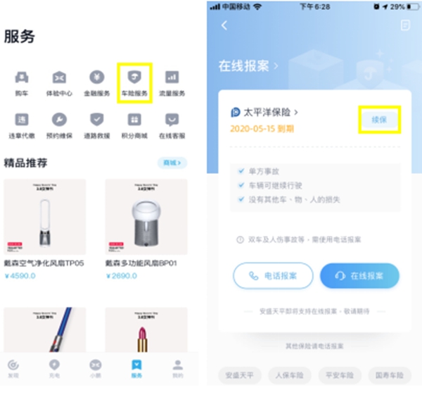 如果你的爱车处在“可续保时间”(可续保时间受各地监管要求不同),车载大屏会推送提醒,点击续保提醒消息,就可以直接进入保险机构续保界面。除了车载大屏外,手机上的小鹏汽车APP也会向您推送续保提醒消息。车主如果收到上述提醒,即可开启“在线续保”。