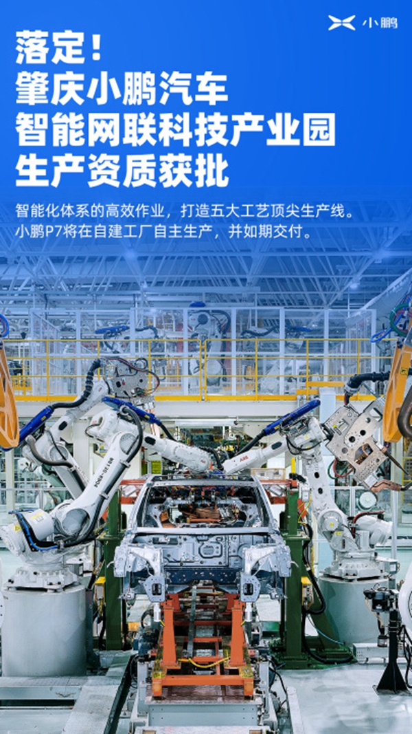 未雨绸缪 生产资质落定:小鹏P7将在肇庆工厂自主制造