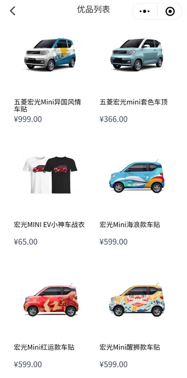 当前,宏光MINIEV的周边在淘宝、京东等电商平台上形成了颇具规模的商品集群,一方面,宏光MINIEV座椅套、地垫等配件产品成为电商爆款,另一方面,宏光MINIEV改装文化掀起车贴、车膜商品消费热潮。以淘宝为例,月销逾500件的相关衍生商品比比皆是,销量破千的亦不在少数。可以说,不少个体经济也分享了宏光MINIEV热销带来的“红利”。
