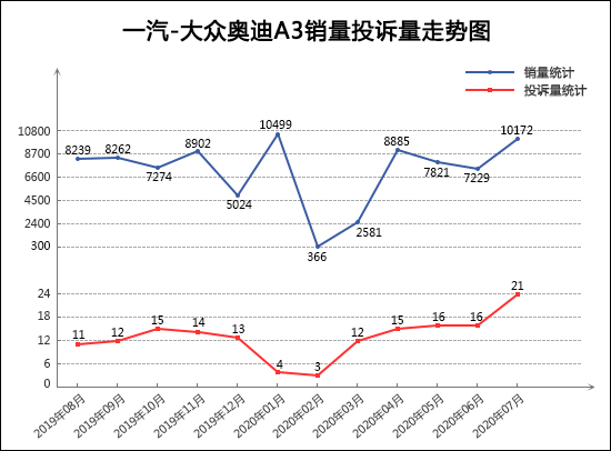 在整个车市逐步回暖的大背景下,一汽-大众宝来的市场表现却并不乐观。从其近一年来的销量走势可以看到,7月份宝来的月销量跌至近一年来的第二低点,环比下降22.5%。进入2020年以来,宝来的月销量一直徘徊在2万辆上下,虽然销量成绩不算低,但仍与其巅峰状态时相差甚远。究其原因,与其居高不下的故障问题投诉不无关系。据车质网数据显示,宝来近一年多以来的投诉问题多集中在发动机、变速箱等车辆核心部件,从其近一年的月投诉走势来看,月均投诉量一直保持在40宗上下,短期内的质量口碑表现欠佳。随着国内车市正式进入下半程,宝来在下半年首月便迎来销量大幅下降,尽管其目前仍处于轿车月销量排行榜前列,但如不及时修复和提升现有的质量口碑,未来市场表现或将进一步转差。