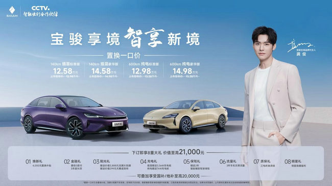宝骏享境共有140km插混标准版、140km插混豪华版、600km纯电标准版、600km纯电豪华版四款配置可选,官方指导价为12.98万元-15.38万元。宝骏享境预售17天收获超过5,000个订单,为感谢用户信赖,特别推出诚意回馈:购宝骏享境可享置换一口价12.58万元-14.98万元,以及价值至高21,000元的“8重大礼”,包括焕新礼、金融礼、阳光礼、充电礼、保驾礼、流量礼、质保礼、明星礼,此外还可叠加享受至高20,000元的国家/地方补贴。广大用户可通过宝骏汽车APP/小程序等线上渠道下订。