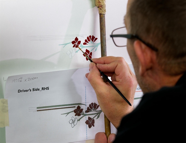设计一向是追求极致的精神,而纯手工打造的美感则将这份极致推向高潮,劳斯莱斯车身的腰线,是纯正手工技艺的最好体现。目前,劳斯莱斯古德伍德工厂仅有一位工匠大师可以胜任这项工作——他就是劳斯莱斯的腰线大师Mark Court。作为经典传承的一部分,从品牌创立到现在,劳斯莱斯因Mark Court笔下的腰线而变得无可匹敌。Mark使用特制松鼠毛刷绘制腰线,这种毛刷经过反复验证能够保证画出的线条和图案流畅完美。劳斯莱斯车身上每一条单腰线的宽度仅为3毫米,双腰线的距离仅为2毫米。客户专属的个性需求,比如在腰线上绘制一颗钻石、一轮初日或者有特殊意义的徽章,则更加考验Mark Court的功力与技艺。在5米多的车身上一气呵成地徒手绘制完成如此精致的腰线绝非轻易能够做到。迄今为止,Mark没有出现过任何差错。自信的Mark Court表示自己绘制的腰线必须始终保持完美,这是他为劳斯莱斯工作的理由。Mark笔下的车身腰线可以堪称劳斯莱斯汽车设计上的点睛之笔。在当今这个批量化生产的时代,也只有劳斯莱斯保留着对于纯手工工艺和极致完美的执着。