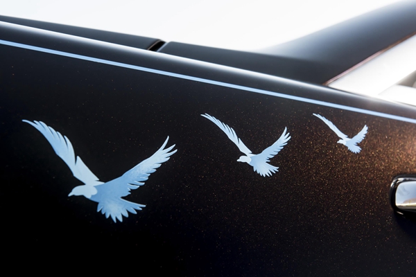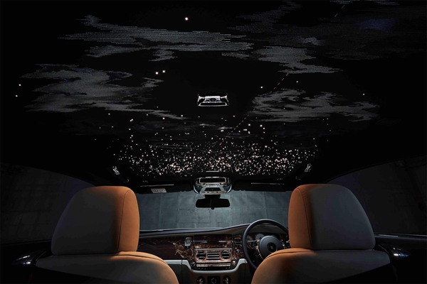 劳斯莱斯著名的“星空顶”由1,340根手工编织的独立光学纤维组成,通常情况下,这一工艺需要耗时一整天,若是个性化定制,则需耗费更久的时间来完成。“点点繁星”可以组成任何形状,比如车主的生日或星座轮廓。今年5月刚刚发布的魅影飞鹰八号典藏版,最引人注目的设计元素之一就是超凡出众的星空车顶。1,183个星光纤维光束布局成1919年人类历史上首个跨越大西洋不间断飞行那夜的星空,飞行路线和星座则以黄铜线刺绣而成,星空顶上还手工绣出了云层。用劳斯莱斯特有的方式纪念意义非凡的历史时刻,也再次证明劳斯莱斯不仅仅制造汽车,而是通过品牌独特的设计元素,为每一辆劳斯莱斯汽车注入个性和灵魂,使劳斯莱斯成为具有收藏价值和意义的艺术品。