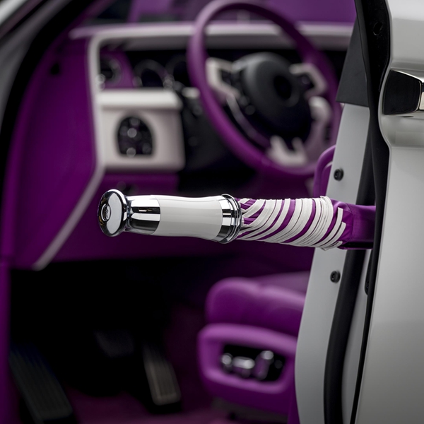 而在社交网络上常常为人们提及的劳斯莱斯雨伞,便是在细节之处展现其奢华尊贵。轻触车门按键,隐于车门内的定制雨伞可自动弹出,推拉手柄便可轻松开合雨伞。专属插孔带有自动烘干功能,时刻保证雨伞干净如新,让车主无论何时都能彰显从容优雅的姿态。不论是伞面的主色与配色,抑或是伞边和伞柄材质选择,都可以与内饰的配色方案和材料选择相呼应,匹配车主的独特品味和风格。