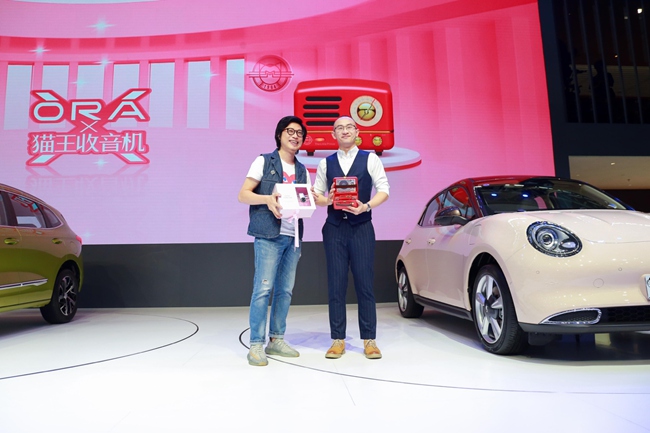 联姻庆喜,与猫王复古收音机喜联姻。作为国内精品纯电动汽车的代表,长城欧拉坚信潮流易逝风格永存,通过不断的跨界出圈,探索复古未来美学,并与天生自带复古style的猫王收音机进行跨界联姻。