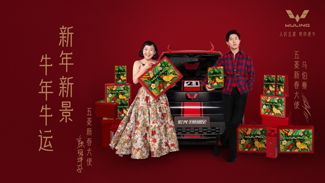 【2021年1月29日】“牛”转新运,“礼”遇不停。随着牛年新春的脚步越来越近,五菱持续奉送新春惊喜,不仅邀请马伯骞、辣目洋子作为五菱新春大使,推出明星联名款麻辣新年礼,还诚意回应用户改装热情,打造宏光MINIEV牛年纪念款,传递“人民五菱 有你更牛”的新春祝福。今日,五菱品牌正式推出宏光MINIEV新春牛气套装,满足用户们打造牛车心愿,让用户都可以潮改扮靓自己的座驾出街,迎接牛年新气象。