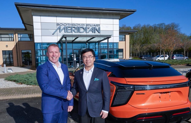 图片说明:英国之宝全球CEO John Buchanan先生(左)与高合汽车创始人、董事长兼CEO丁磊在英国亨廷顿Meridian全球总部