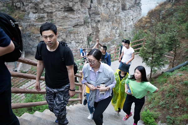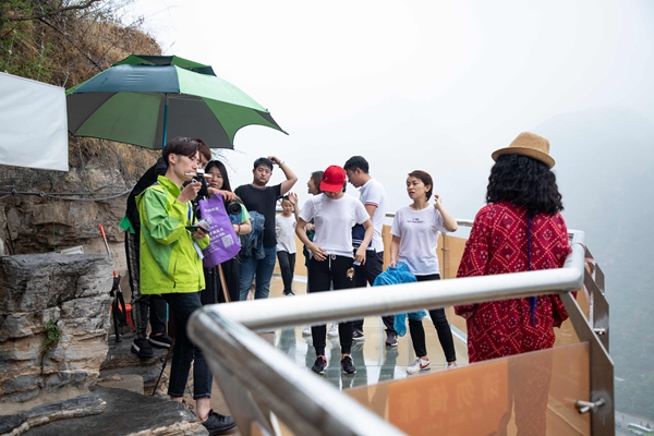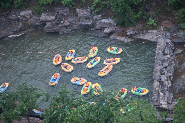 游玩地点十渡风景名胜区,是北京市最大的自然风景区。气候宜人,水质良好,更有“天然氧仓、自然空调”之称。当天偶有下雨却未曾阻挡大家玩乐的热情,高山漂流惊险刺激,尖叫连连却仍不亦乐乎。登上建于主峰之巅的玻璃栈桥,此玻璃栈道落差300余米,战人心魄却经历更多的精彩与美景!